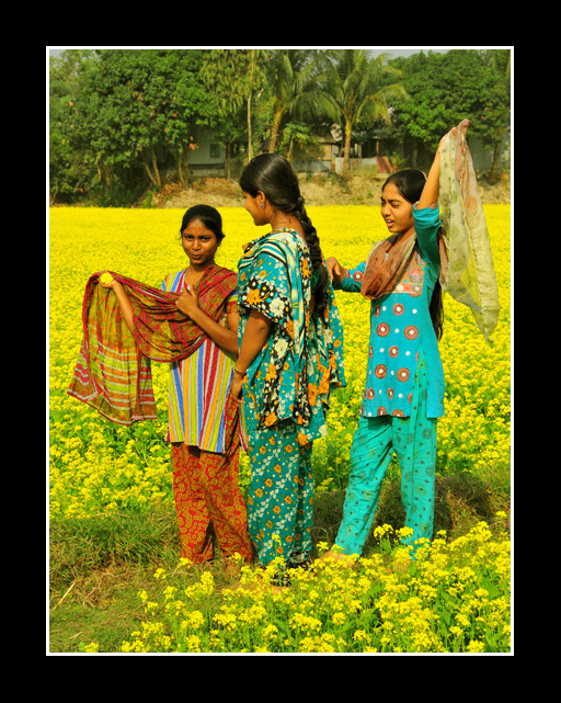 からし畑から次々に人が集まってきます