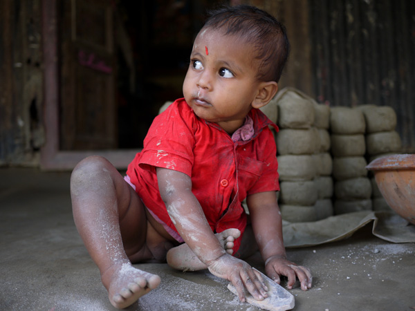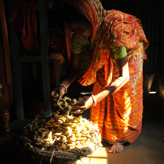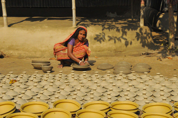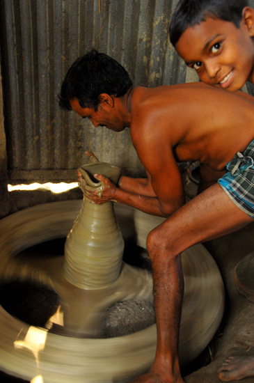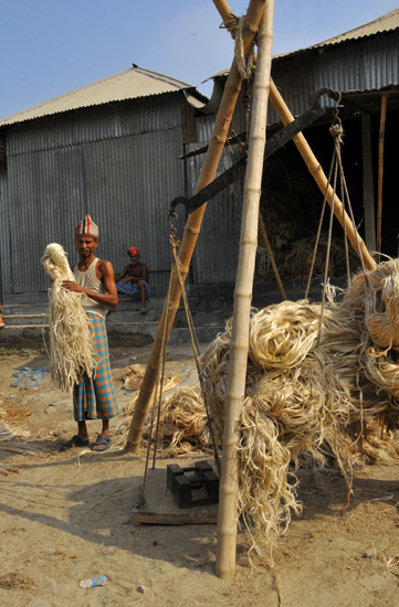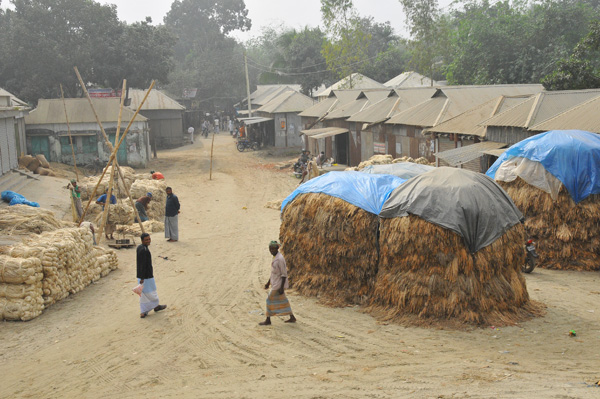近くにはジュートの作業所や市場があって