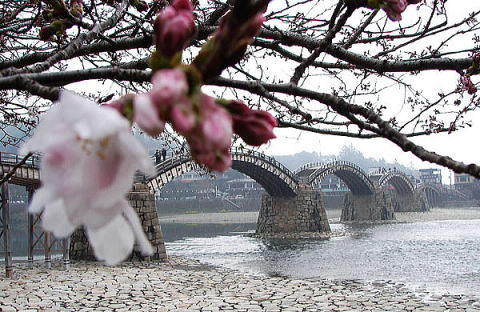 錦帯橋周辺の桜が ほぼ、満開状態です。(4月2日)