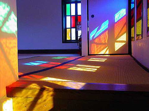 その職人が和紙と竹の手細工に 織物の染料を用いて