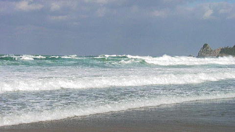 打ち寄せる浜辺の砂がわずかづつ